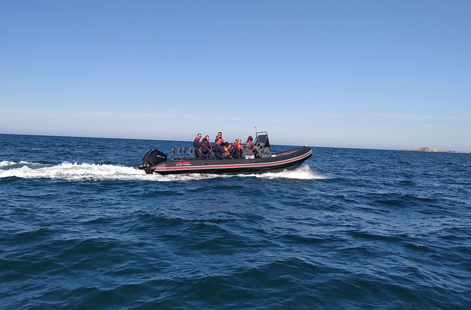 Après ces quelques minutes de rêverie, c’est l’heure des sensations fortes : le semi-rigide propulsé par 500 chevaux file à toute vitesse. Les sourires sont sur tous les visages !