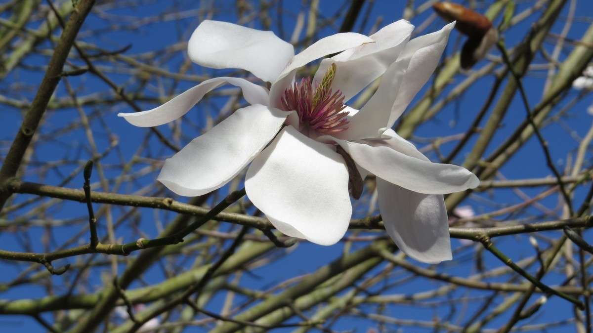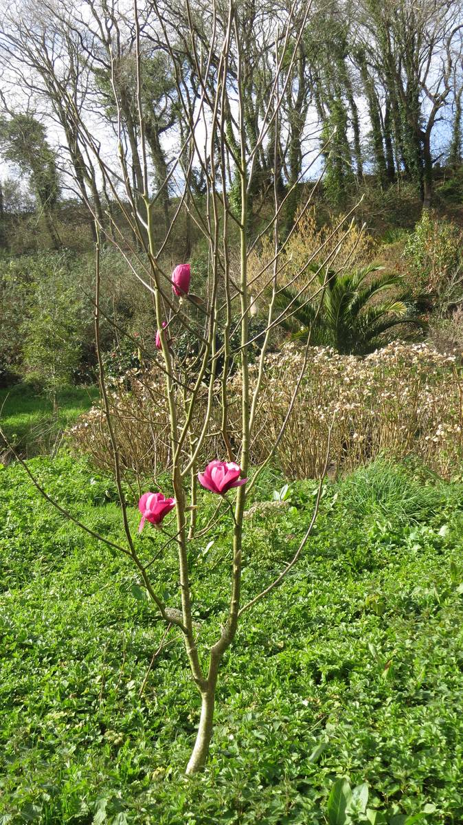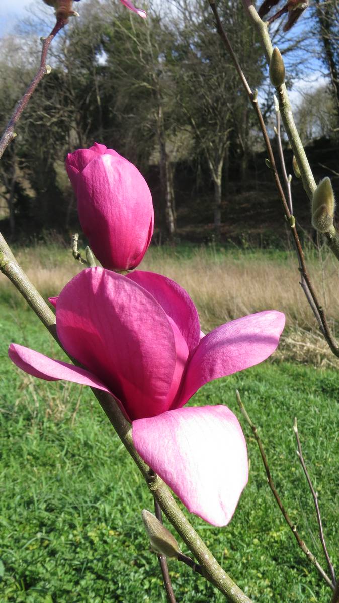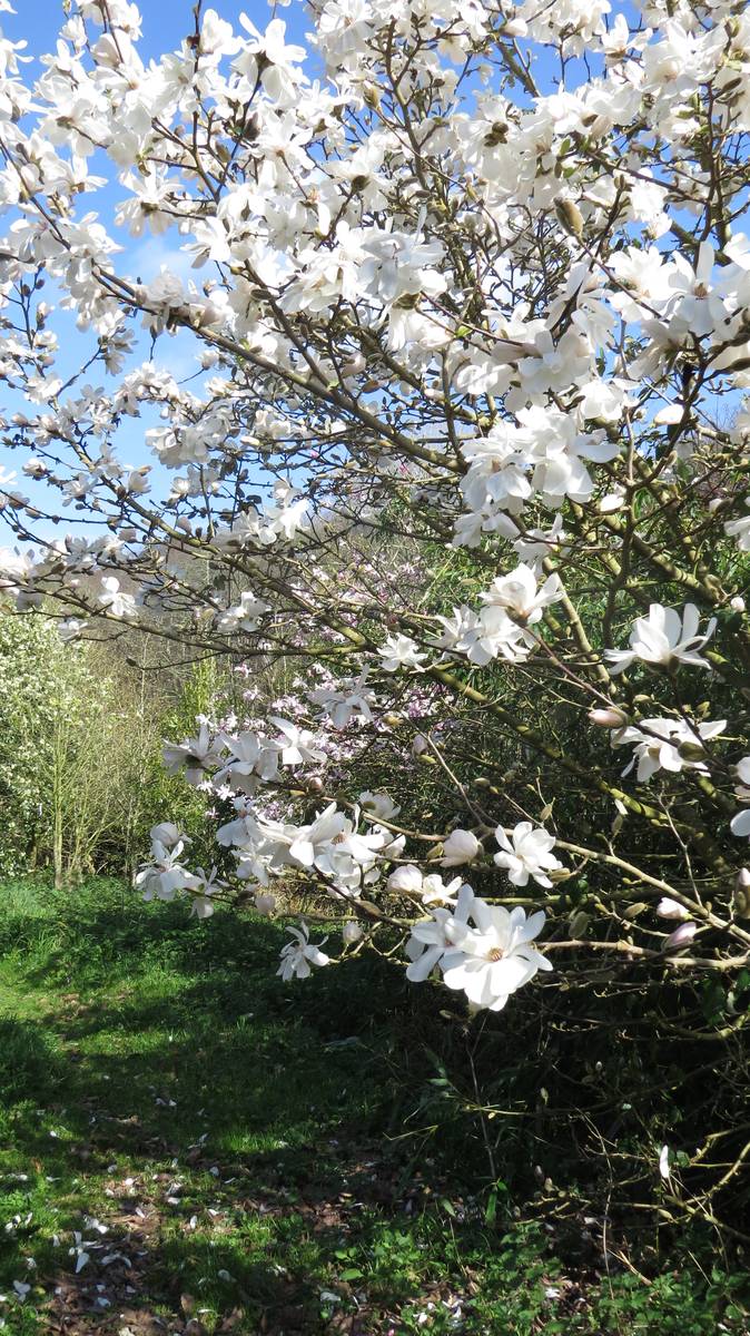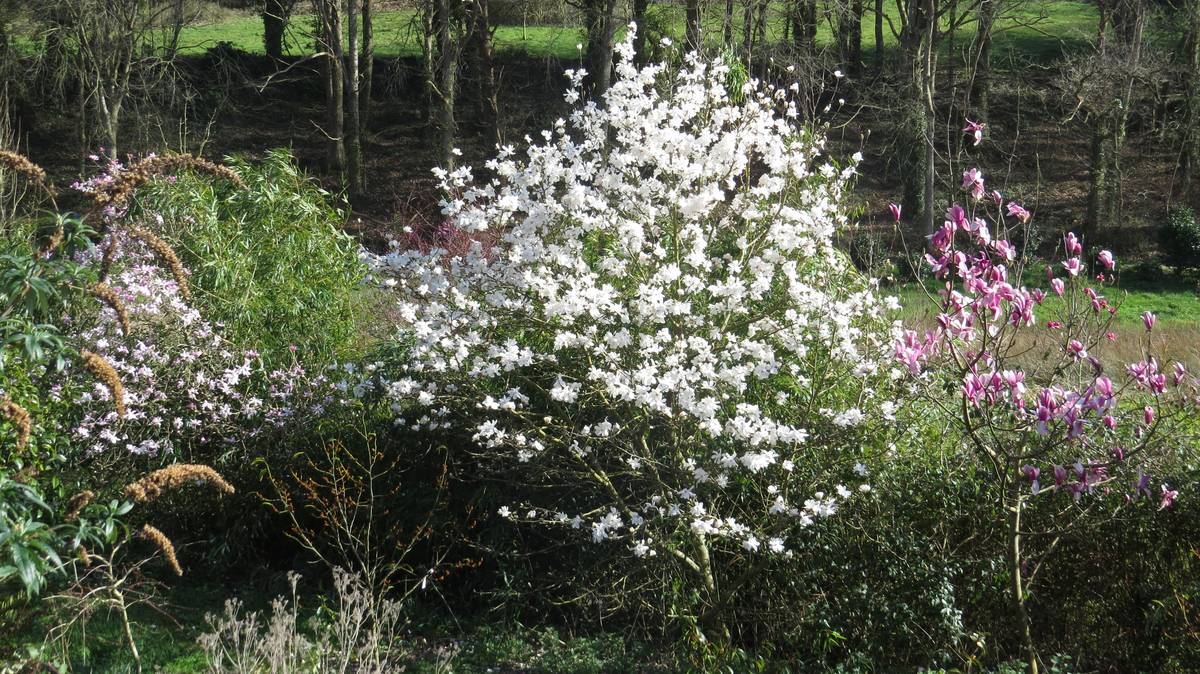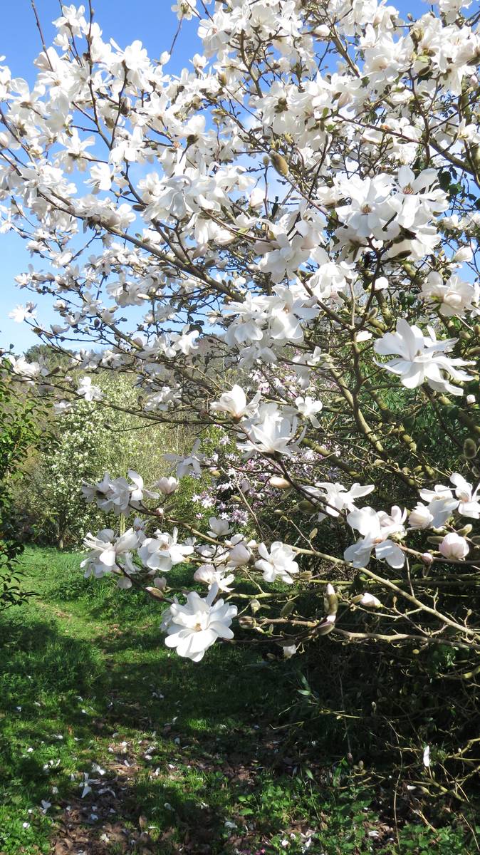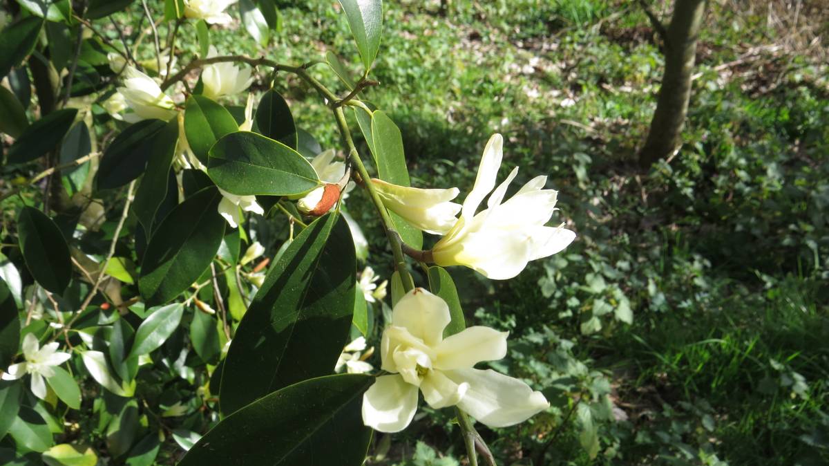 Les 150 magnolias du parc aident à l’entretien. En effet, ces feuilles sont des désherbants naturels. Dans cet époustouflant environnement, ayant enfin atteint sa maturité, le magnolia Campbellii, originaire du Nord de l’Inde, offre ses 1ères fleurs…. Quel spectacle pour les yeux !
