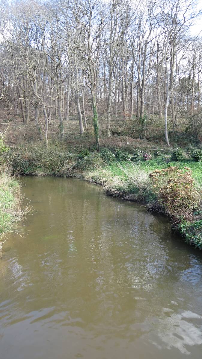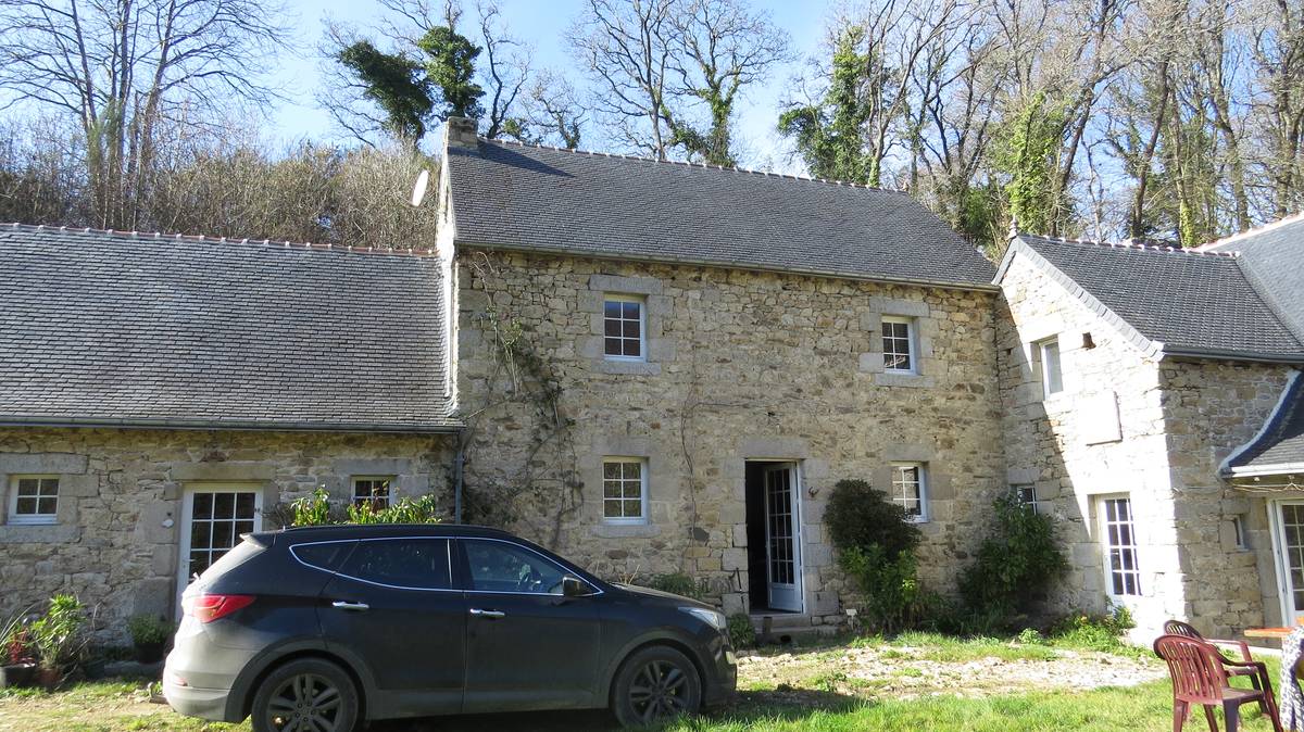 Sur les berges du Guillec, je rencontre le propriétaire du Moulin de Kérouzéré. Celui-ci me raconte sa découverte en 2005 : un édifice en partie en ruines sous une pluie de lierres. Depuis quatorze ans, pierre après pierre, le moulin reprend forme. Des poutres sont venues de Blois en semi-remorque…. Afin de conserver l’origine du bâtiment, les charpentes ont été retracées, coupées dans du vieux bois...