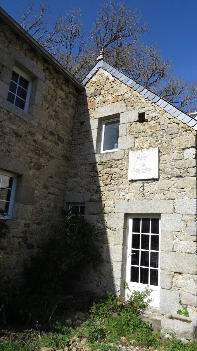 Dans le moulin, une pierre originaire de Moguériec, travaillée par les tailleurs de pierre et sculpteurs, rappelle que la vallée est tournée vers la mer.