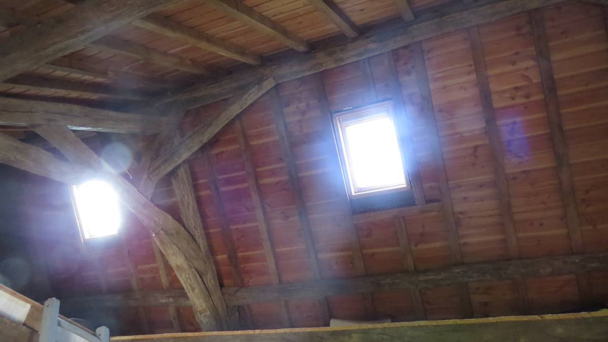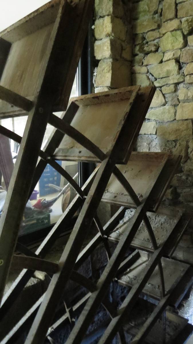 Entre la partie habitée et la partie moulin trône comme un miroir en pied une magnifique cheminée en pierre. Chose aisée d’imaginer les villageois aller et venir autour de ce foyer…