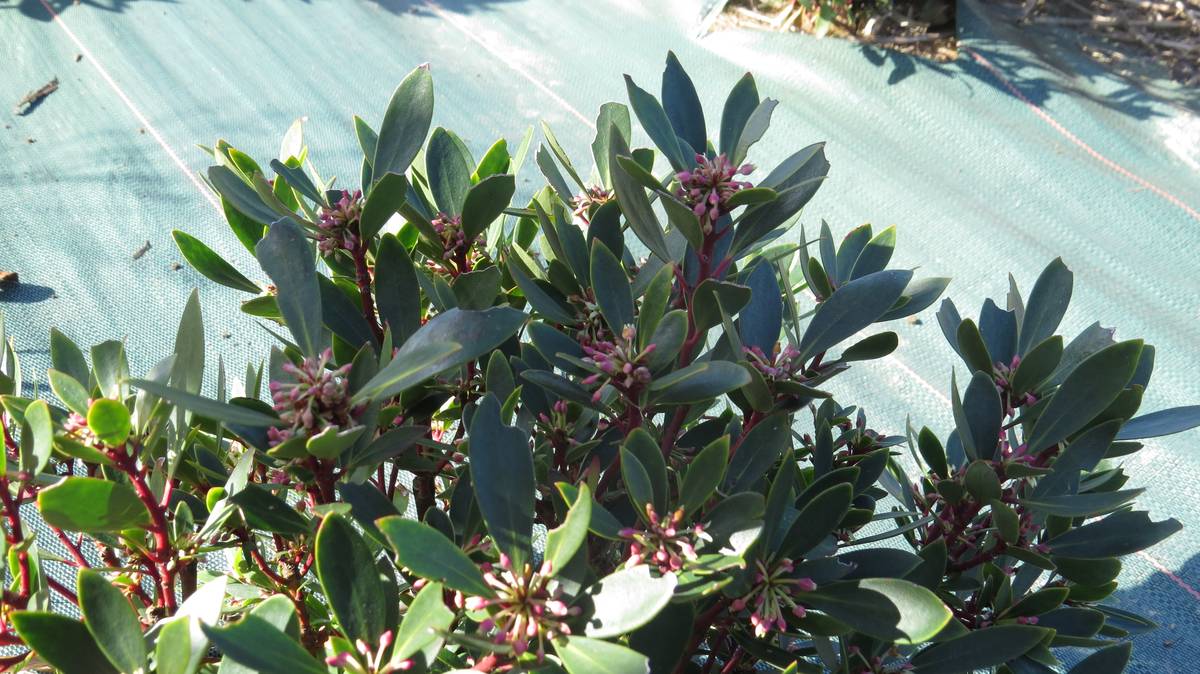 Chez les Magnoliaceae, venant de Nouvelle-Zélande, remarquablement florifère, le michelia présente des corolles délicieusement parfumées. Aussi de Nouvelle-Zélande, avec plus ou moins de pédoncules, à la floraison terrible, espacée dans le temps, deux hybrides se parent pour l’un de rose, pour l’autre de crème.