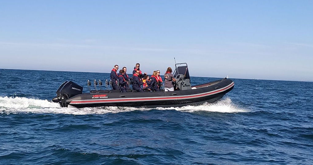 Dans les activités retenues, un peu d'histoire avec la visite du château du taureau mais pour éviter la foule, on va partir découvrir ce fort dans la baie à bord d'un semi-rigide avec les Vagabonds de la Baie. Une sortie au top, au plus près des rochers, rencontre magique avec des dauphins qui jouent devant le bateau (on a eu de la chance nous dit Gwendal, le skipper, ce n'est pas à chaque fois), escale au château avec le goûter, on profite du panorama !