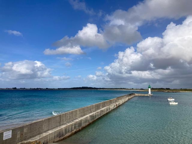 Arrivés à la plage des Amiets nous avons eu la surprise de goûter à la cuisine réunionnaise chez "Les Amièts restaurant". Ce qui tombait à pic comme une faim s'était installée et nous nous sommes régalés ! Après cela, la pause digestive s'imposait, nous avons avancé jusqu'à Kerfissien où nous avons décidé de nous poser sur la plage, prendre le temps et piquer une petite tête. Le sable avait eu le temps de chauffer avec le soleil du matin, la mer remontait doucement... L'eau était bien bonne ! Nous sommes repartis en fin d'après-midi, on devait penser au chemin retour. Nous avons fait de Moguériec à Kerfissien, aller-retour 16km environ. On en a bien profité !
