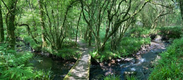 Le lendemain, nous sommes partis du camping et avons fait le circuit du Mougau. Cette randonnée de 13km passe par la belle allée couverte du Mougau puis dans les tourbières. On a la surprise d'emprunter des petits pontons de bois avant de rejoindre le sentier qui grimpe jusque sur les crêtes des Monts d'Arrée.