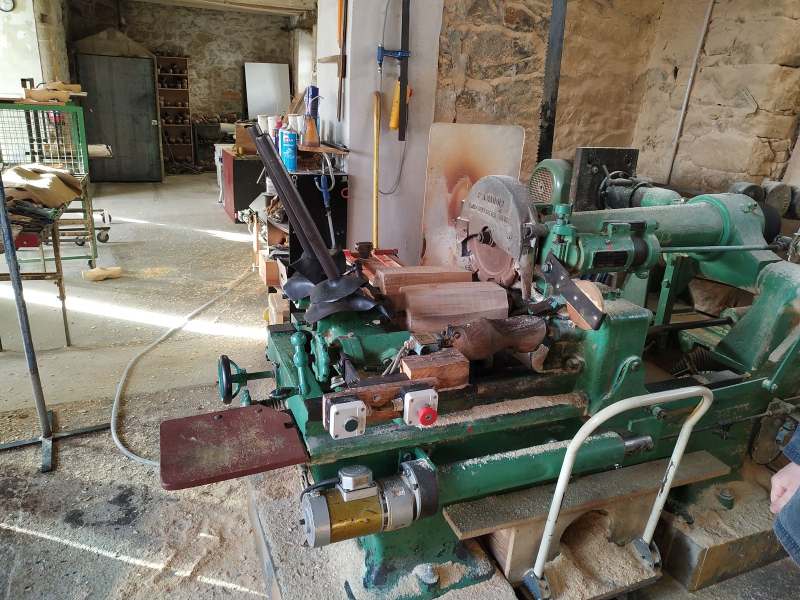 Amateurs de travail du bois : vous apprécierez les lieux ! Le passage en revu des outils manuels spécifiques à la fabrication d’un sabot est déjà intéressant, mais c’est la présentation des machines-outils mécanisées qui nous aura sans doute le plus impressionné (l’une d’entre elles datant du XIXᵉ siècle) : façonneuse, copieuse, creuseuse… des pièces d’ingénierie qui ne laissent pas indifférents.