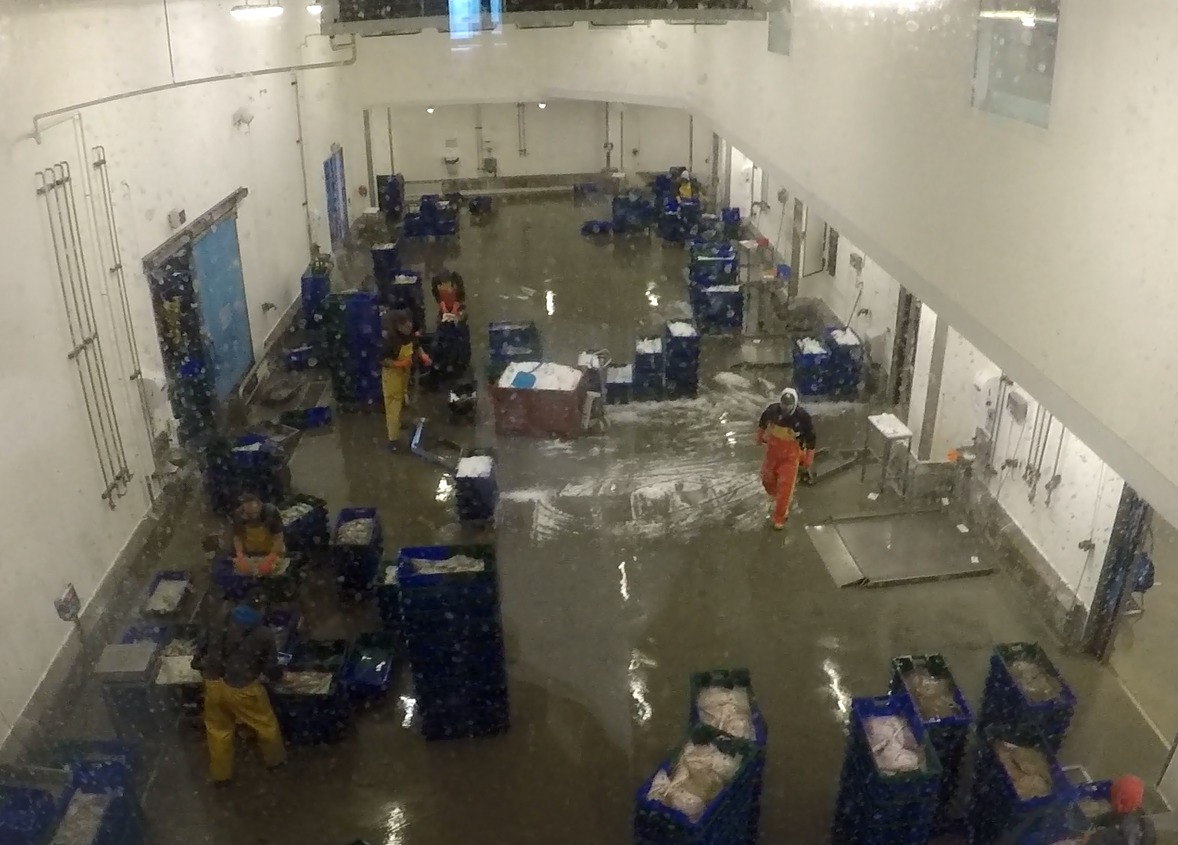 Nous achevons notre visite dans un espace vitré surplombant la salle de tri du poisson ! Dans des bacs empilés, de beaux encornets étaient en train d’être classés selon différents critères : bateau, taille, qualité…Cette étape est cruciale pour garantir une bonne vente !